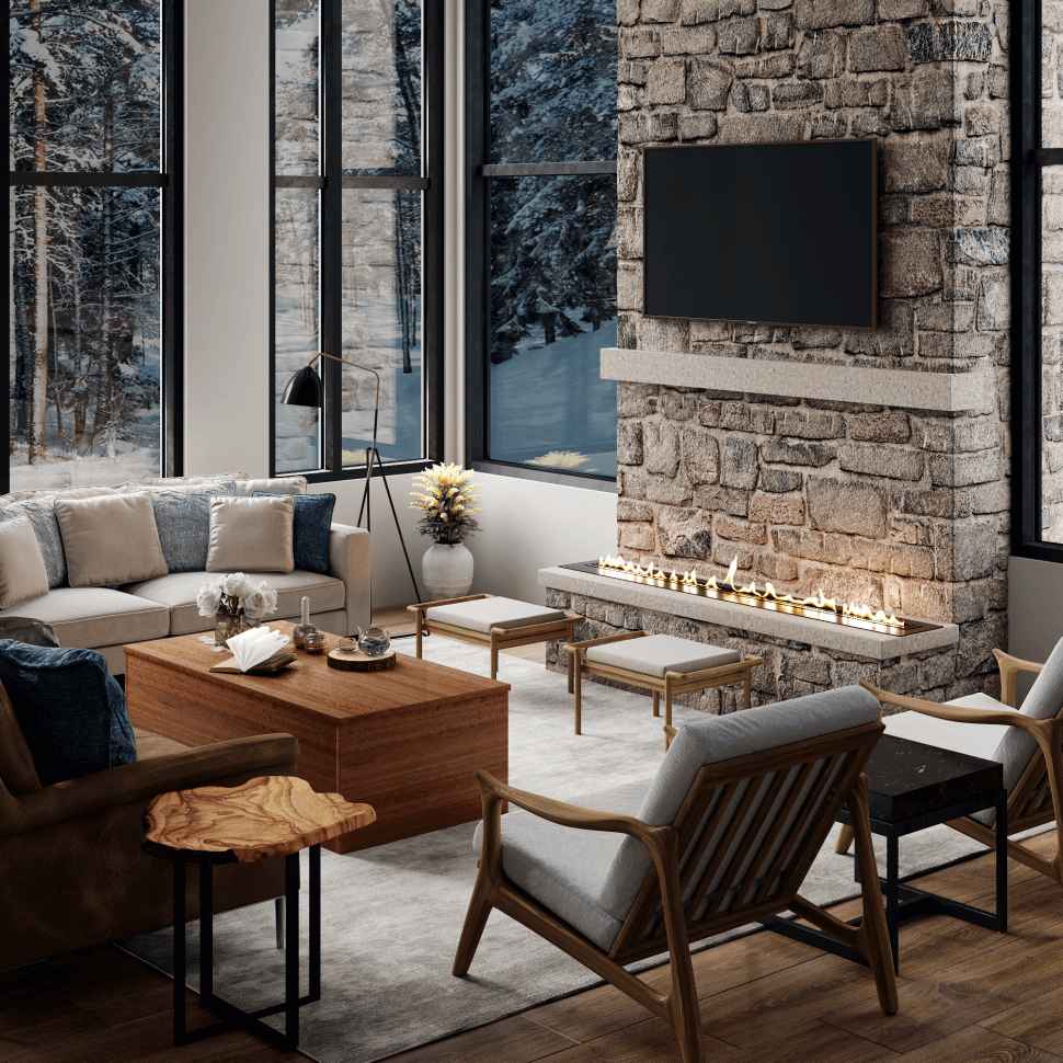 Встраиваемые варианты разделяются на такие как классические, устанавливаемые в подготовленное отверстие в стене или нише. Угловые, которые монтируются в угловую часть стены. Торцевые – открытые с трёх сторон. И сквозные, вид живого огня которых доступен в разных комнатах.
