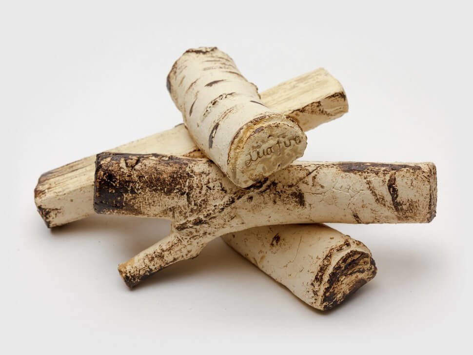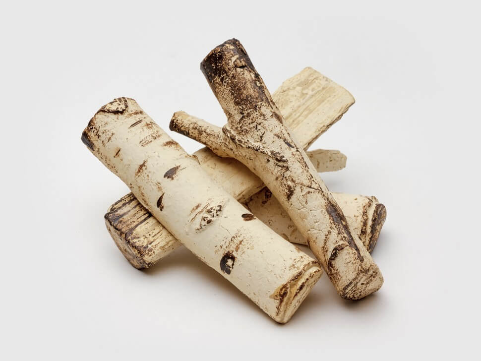 Керамические дрова изготавливаются из шамотной глины и керамического ангоба, проходят обжиг в специальной печи и расписываются в ручную. Не горят и не выделяют вредных веществ. Идеально подходят для декорирования встроенных биокаминов и линий огня