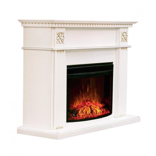 Каминокомплект IGMA Флоренция (белый с золотой патиной)+Panoramic 25