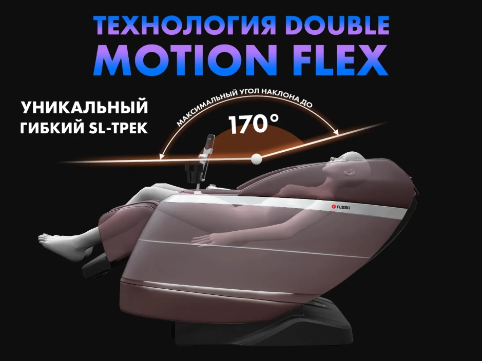 Максимальный угол наклона 気 FLEXOR 170° достигается за счёт уникального гибкого SL-трека Double Motion Flex и обеспечивает наиболее удобное положение и глубокий массаж, чем все известные аналоги. Такой угол наклона позволяет добиться эффекта настоящей растяжки при массаже. Максимальный угол наклона 170° достигается за счёт гибкого SL-трека Double Motion Flex и позволяет добиться эффекта растяжки при массаже.